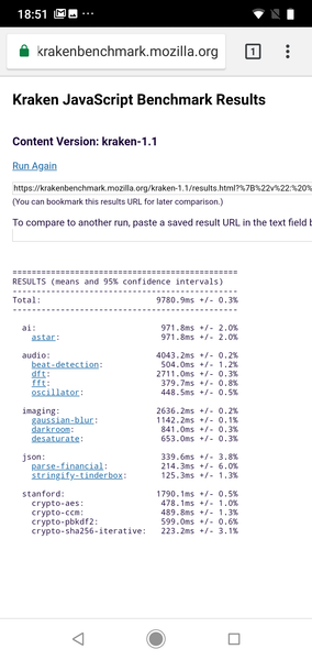 | Mozilla Kraken (мс, меньше — лучше) | 9781 | 3803 | 4561 | 4126 | 4487 |