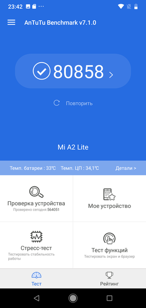 Впрочем, в реальной жизни смартфон справляется практически с любыми задачами, большинство игр идут без заметных притормаживаний. И все же, существенного запаса мощи для будущих обновлений, как у той же SoC Snapdragon 660 в старшей модели Xiaomi Mi A2, у такой платформы нет.