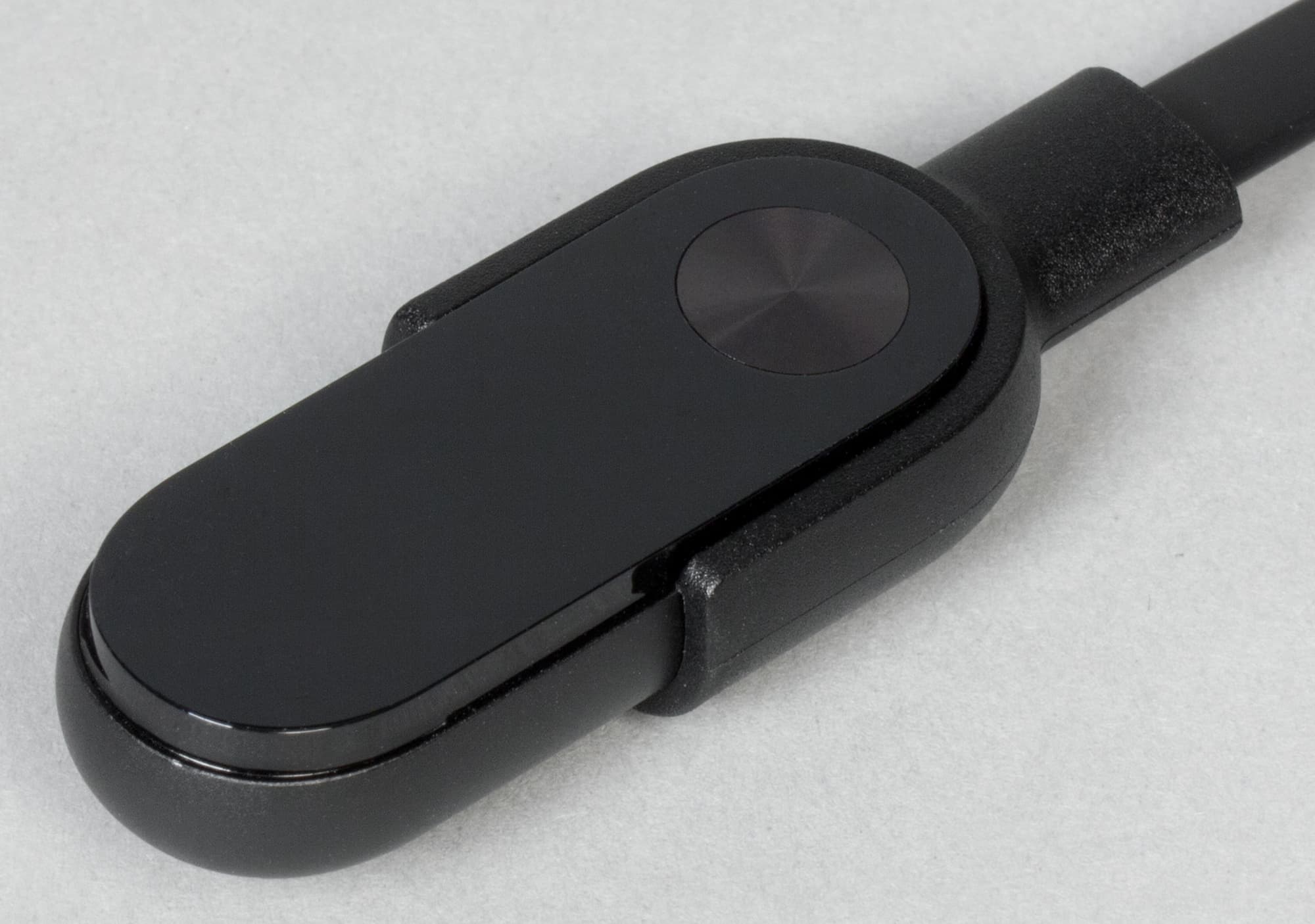 Сбоку на устройстве видны два контакта — с их помощью Mi Band 2 заряжается. Для подзарядки его надо вставить в колыбельку на комплектном кабеле этими контактами вперед.