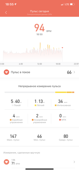 Заметим, что сон браслет может отслеживать самостоятельно, автоматически определяя, когда вы легли. Что касается пульса, вы можете применять автоматическое отслеживание (с определенной периодичностью) или делать измерения самостоятельно, пользуясь соответствующим пунктом в меню браслета.