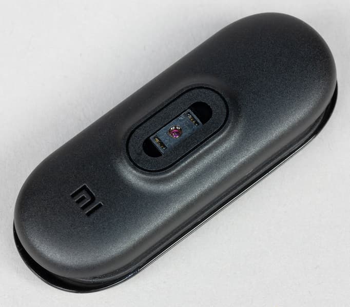 Блок этот легко извлекается из ремешка. На его тыльной поверхности, прилегающей к руке, когда браслет надет, располагается датчик сердечного ритма. Основной материал корпуса — матовый пластик.