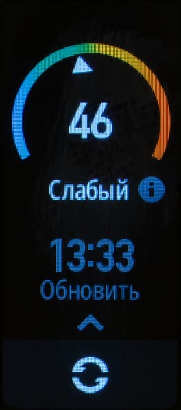 Далее, браслет теперь измеряет уровень стресса. Не совсем понятен алгоритм, как именно это происходит — очевидно, в первую очередь по сердцебиению в покое. Однако очевидно, что стресс — более глубокая вещь не столько физиологического, сколько психологического свойства (за исключением совсем уж крайних проявлений).