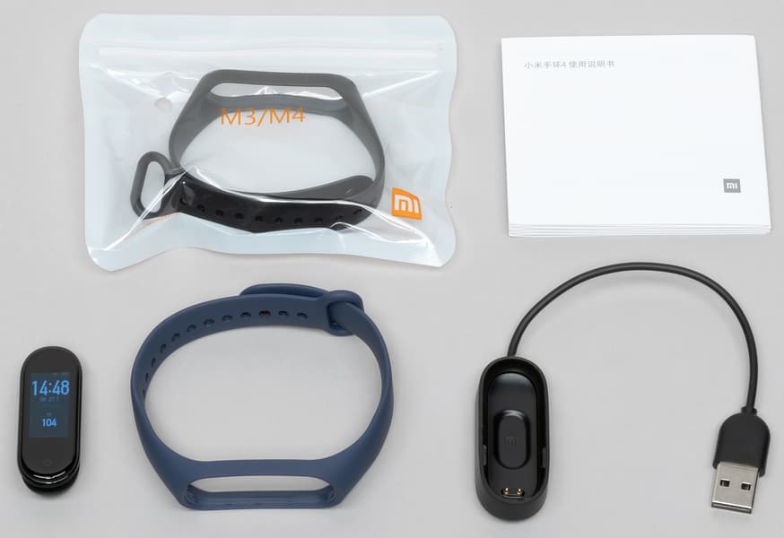 Внутри обеих коробок можно обнаружить сам гаджет, силиконовый браслет, USB-кабель для подзарядки устройства и скромное руководство пользователя, где все на китайском (хотя рисунки, возможно, могут оказаться полезными). Также к Mi Band 4 был приложен дополнительный ремешок.