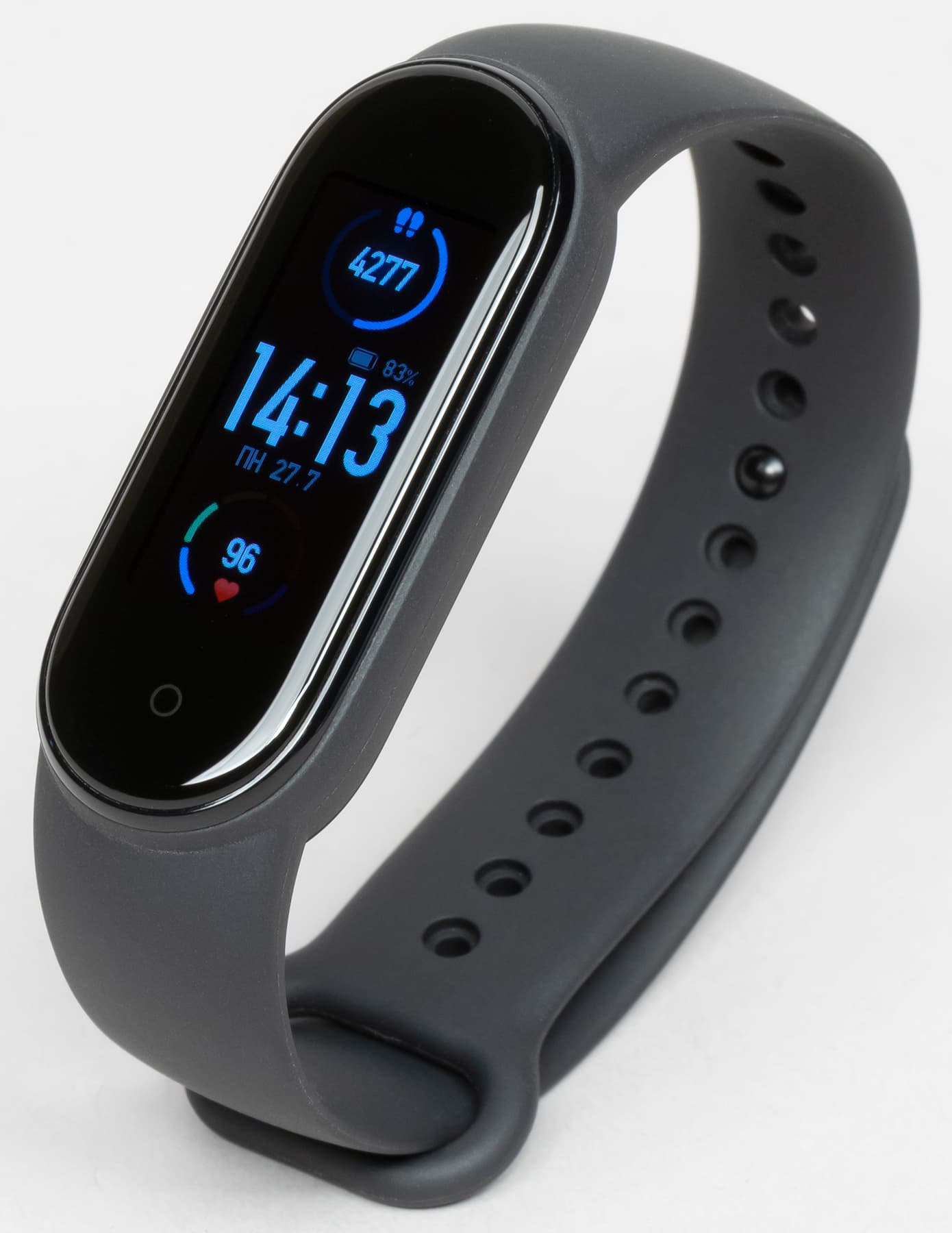 Внешний вид устройства уже несколько поколений практически не меняется. Точнее, в Mi Band 4 впервые поверхность стала полностью плоской, без углубления, обозначающего сенсорную кнопку (хотя сама кнопка осталась). И в Mi Band 5 этот дизайн сохранен.