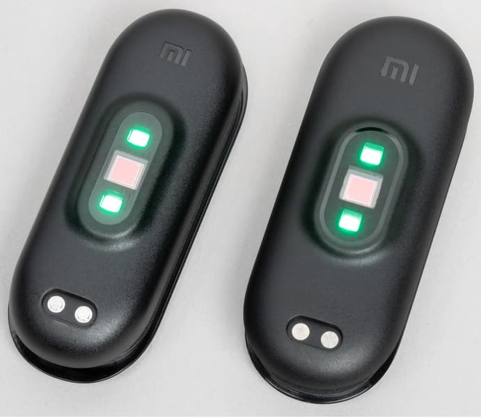 Лицевая поверхность экрана (без уточнения все относится к экранам обоих браслетов) выполнена в виде устойчивой к появлению царапин стеклянной пластины с зеркально-гладкой изогнутой на краях поверхностью. Двоение отражения отсутствует, это свидетельствует о том, что между слоями экрана нет воздушного промежутка. На внешней поверхности экрана есть специальное олеофобное (жироотталкивающее) покрытие, (эффективное, лучше, чем у Google Nexus 7 (2013)), поэтому следы от пальцев удаляются существенно легче, а появляются с меньшей скоростью, чем в случае обычного стекла. Судя по отражению объектов, антибликовые свойства экрана не хуже, чем у экрана Google Nexus 7 2013. Для наглядности приведем фотографию, на которой в выключенных экранах отражается белая поверхность (Mi Band 4 расположен над Mi Band 5):