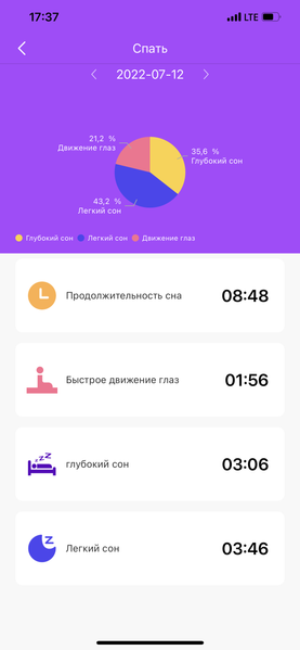 Впрочем, это далеко не единственная проблема приложения. Здесь, например, явные проблемы с синхронизацией и отображением информации. Например, на скриншотах ниже, снятых подряд, видно, что на главном экране информация о сне за прошедшую ночь не обновилась, а на экране самого сна — обновилась.