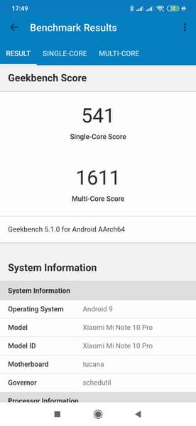 Xiaomi Mi Note 10 Pro работает на однокристальной системе Qualcomm Snapdragon 730G, изготовленной по 8-нанометровому техпроцессу. В конфигурацию этой SoC входит 8 ядер: 2×Kryo 470 Gold @2,2 ГГц + 6×Kryo 470 Silver @1,8 ГГц. Графический процессор Adreno 618 поддерживает версии графического API OpenCL 2.0 Full, DirectX 12, OpenGL ES 3.2, Vulkan 1.0.