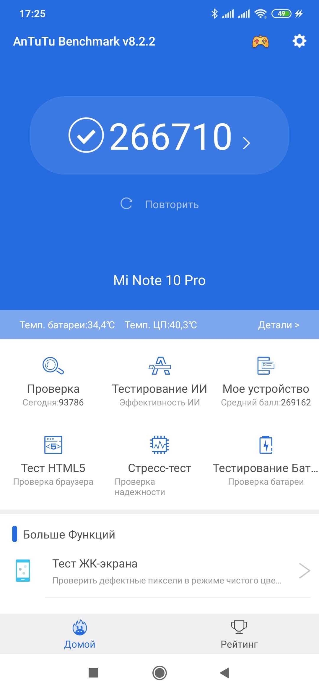 | AnTuTu (v8.x) (больше — лучше) | 266710 | 339871 | 470593 | 256769 | 436454 |