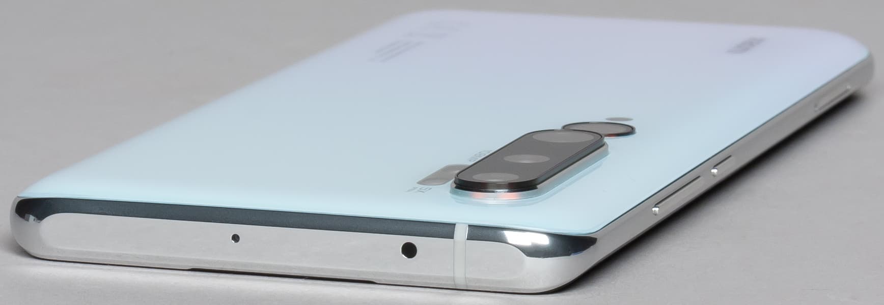 Весь верхний торец отдан лишь двум элементам: дополнительному микрофону для работы системы шумоподавления и инфракрасному передатчику. Верхний и нижний торцы у рамки плоские и широкие, и если бы боковые сегменты рамки были такие же, проблем с эргономикой у смартфона не было бы.