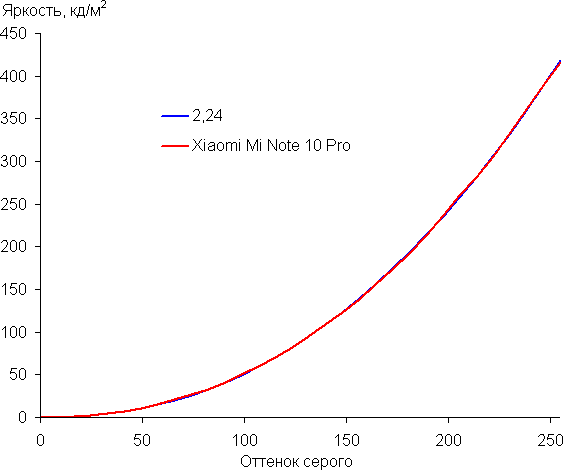 Напомним, что в случае OLED-экранов яркость фрагментов изображения динамично меняется в соответствии с характером выводимого изображения — уменьшается для светлых в целом изображений. В итоге полученная зависимость яркости от оттенка (гамма-кривая), скорее всего, немного не соответствует гамма-кривой статичного изображения, так как измерения проводились при последовательном выводе оттенков серого почти на весь экран.
