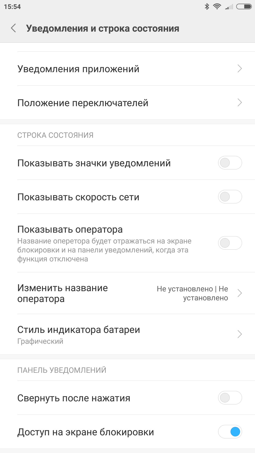 Панель уведомлений позволяет получить оперативный доступ к системным переключателям и имеет богатые возможности настройки. Например, в ней может показываться текущая скорость работы с интернетом, а для индикатора батареи есть три варианта дизайна.