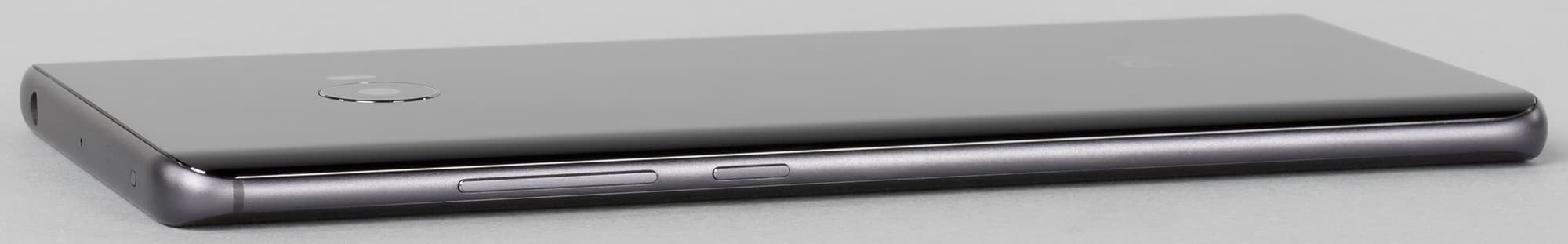 Если использование такой формы на задней панели можно было бы записать в плюсы с точки зрения удобства поднятия смартфона со стола, то преимущества этой конструкции для лицевой панели, на наш взгляд, как минимум спорно. Причин тому несколько. Первая заключается в том, что в результате такого решения непосредственно металлические части боковых ребер становятся тонкими и менее отдаленными от стола — поднять устройство становится сложнее.