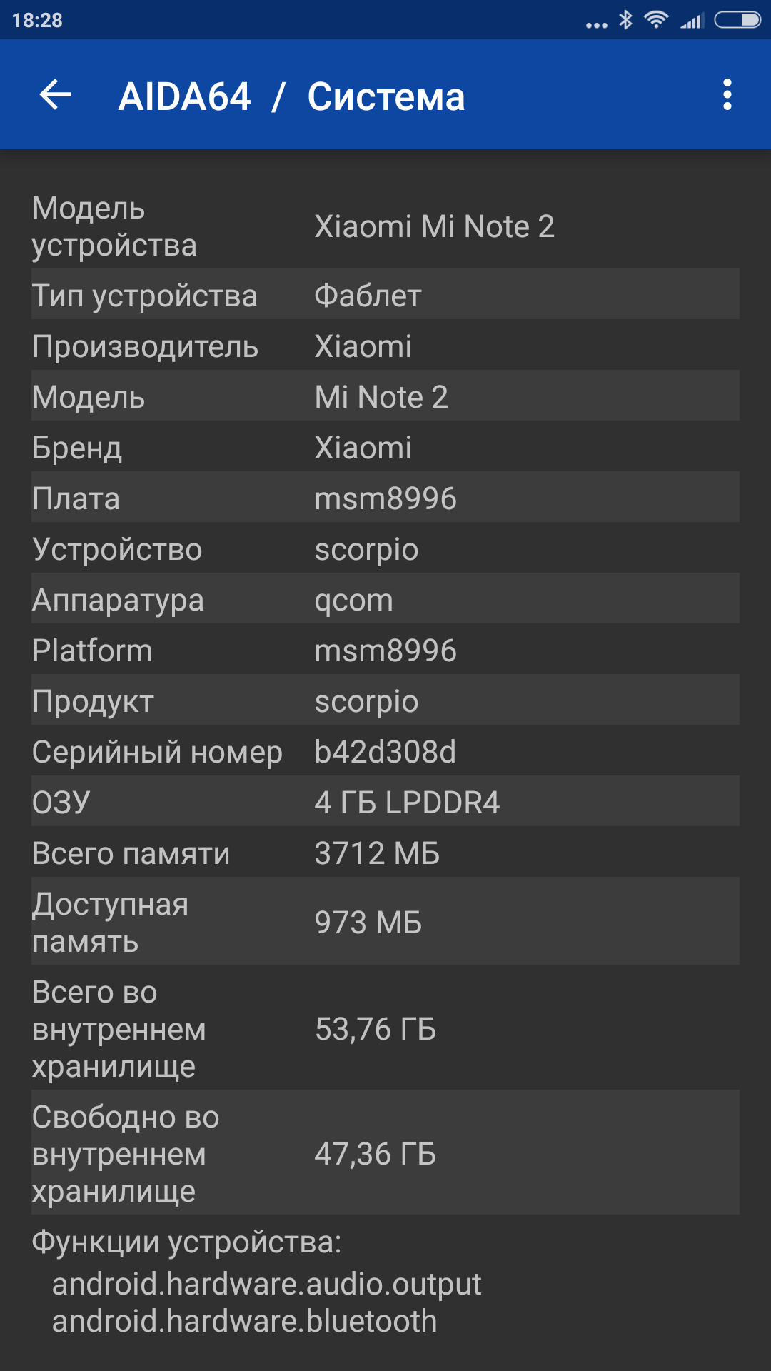 По своей аппаратной платформе Xiaomi Mi Note 2 аналогичен некоторым рассмотренным ранее устройствам этого производителя, а также многим другим из верхнего сегмента. Продукт основан на 64-х битной SoC Qualcomm Snapdragon 821 — текущей топовой платформе Qualcomm для мобильных устройств, на смену которой в этом году приходит Snapdragon 835. В конфигурацию этого процессора входит четыре ядра Kryo, разделенные на два кластера по два ядра. При этом максимальная частота двух старших ядер составляет 2,34 ГГц. За трехмерную графику, декодирование видео и вывод на экран отвечает видеоускоритель Adreno 530. Конфигурация оперативной и флэш-памяти составляет в зависимости от модели 4/64 ГБ или 6/128 ГБ. Слота для установки карты памяти в устройстве нет, но поддерживается USB OTG.