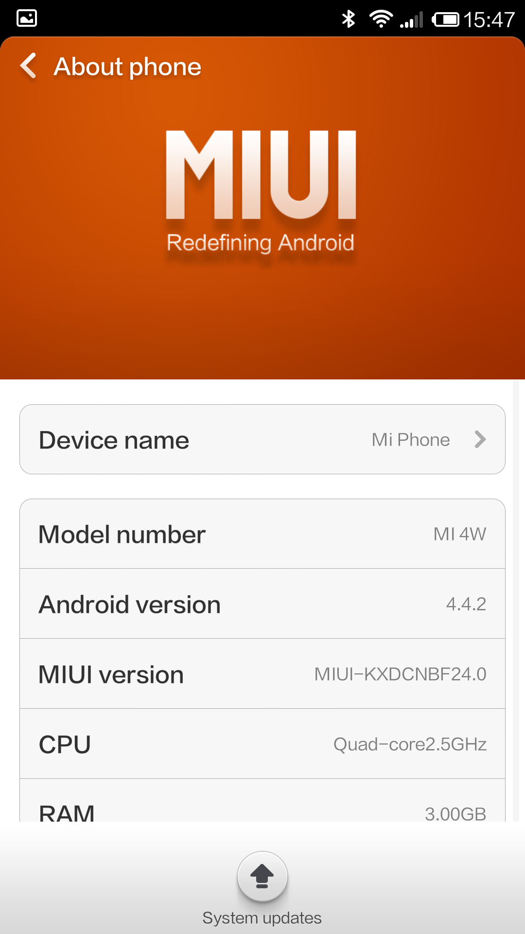 Мобильные продукты Xiaomi традиционно используют прошивку MIUI, которая очень популярна благодаря своему интерфейсу, скорости работы и расширенным возможностям. По сравнению с оригинальным Android, она предлагает пользователю большое количество полезных и удобных функций и сервисов, а также настроек работы системы. Среди них — резервное копирование, защита информации, изменение внешнего вида интерфейса и функций индикаторов и кнопок, управление приложениями и уведомлениями. В данном тестировании использовалась стабильная версия KXDCNBF 24.0. Обновление на нее проводилось «по воздуху» встроенной утилитой. Данная прошивка относится к семейству MIUI 5.0 и основана на Android 4.4.2. Отметим, что производитель оперативно предлагает также и версии для разработчиков. В них, в частности, предусмотрен root-доступ.