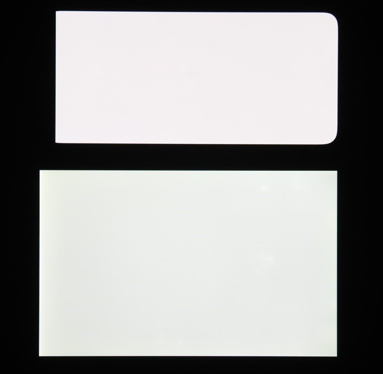 Яркость под углом у обоих экранов заметно уменьшилась (чтобы избежать сильного затемнения, выдержка увеличена в сравнении с предыдущими фотографиями), но в случае Xiaomi Redmi Note 10S падение яркости существенно меньше. В итоге при формально одинаковой яркости экран Xiaomi Redmi Note 10S визуально выглядит гораздо более ярким (в сравнении с ЖК-экранами), так как на экран мобильного устройства часто приходится смотреть как минимум под небольшим углом.