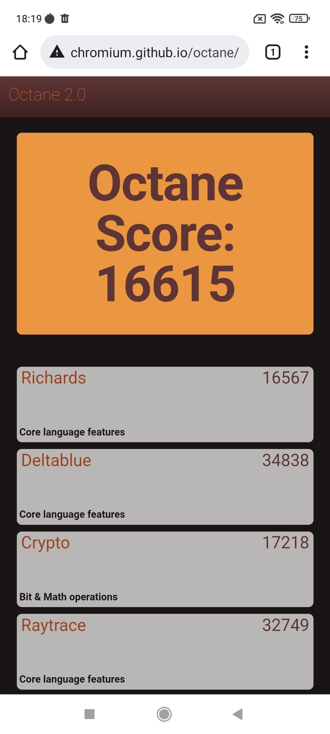 | Google Octane 2 (больше — лучше) | 16615 | 16378 | 19928 | 18041 | 16670 |