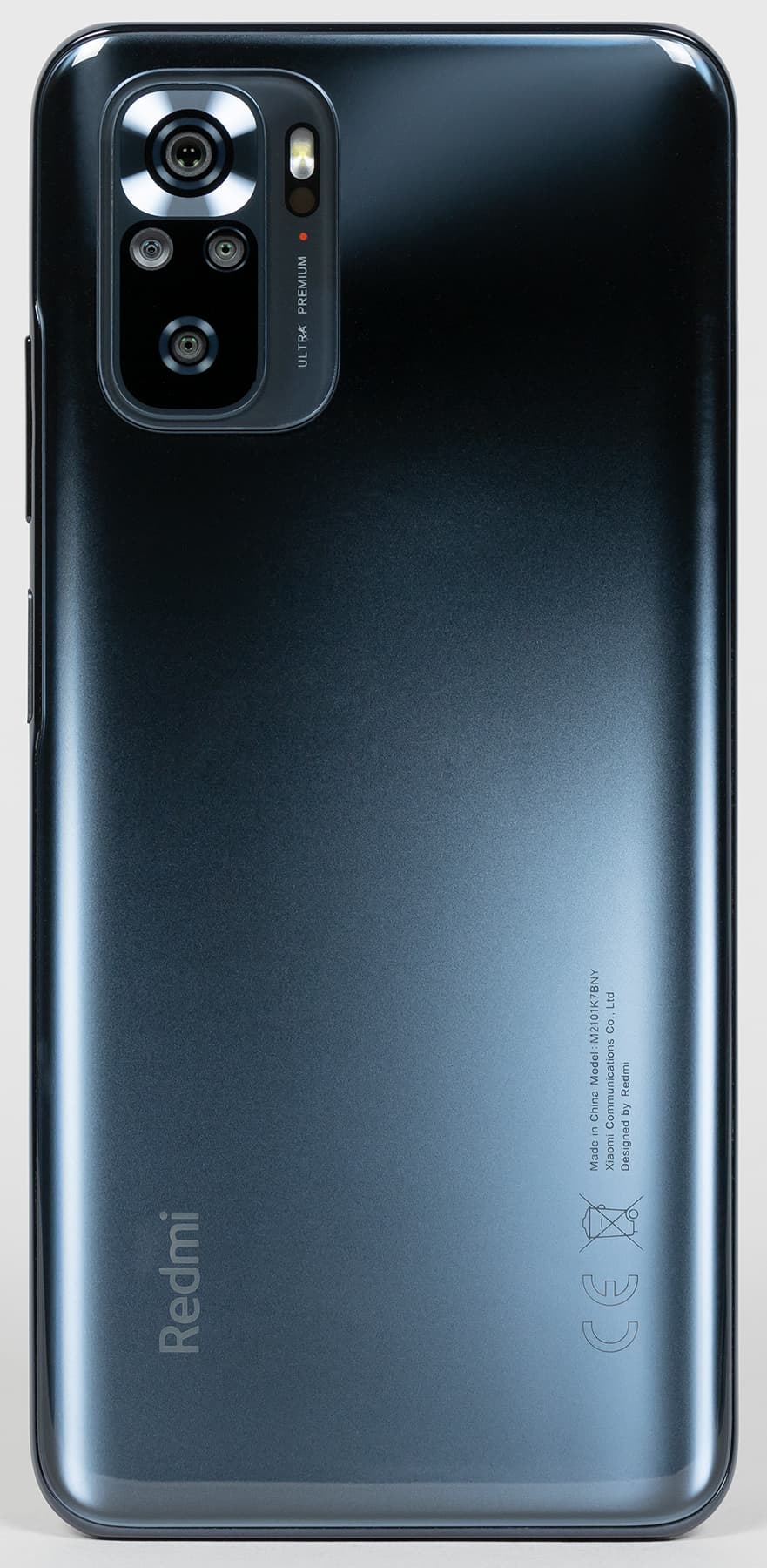 Xiaomi Redmi Note 10S выпускается в нескольких окрасах корпуса — темно-сером, белом, голубом, фиолетовом. Аппарат не получил полноценной защиты от воды и пыли, но указана легкая защита от пыли и брызг по стандарту IP53.