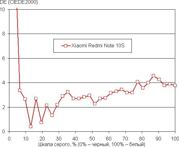 Напомним, что в случае OLED-экранов яркость фрагментов изображения динамично меняется в соответствии с характером выводимого изображения — уменьшается для светлых в целом изображений. В итоге полученная зависимость яркости от оттенка (гамма-кривая), скорее всего, немного не соответствует гамма-кривой статичного изображения, так как измерения проводились при последовательном выводе оттенков серого почти на весь экран.