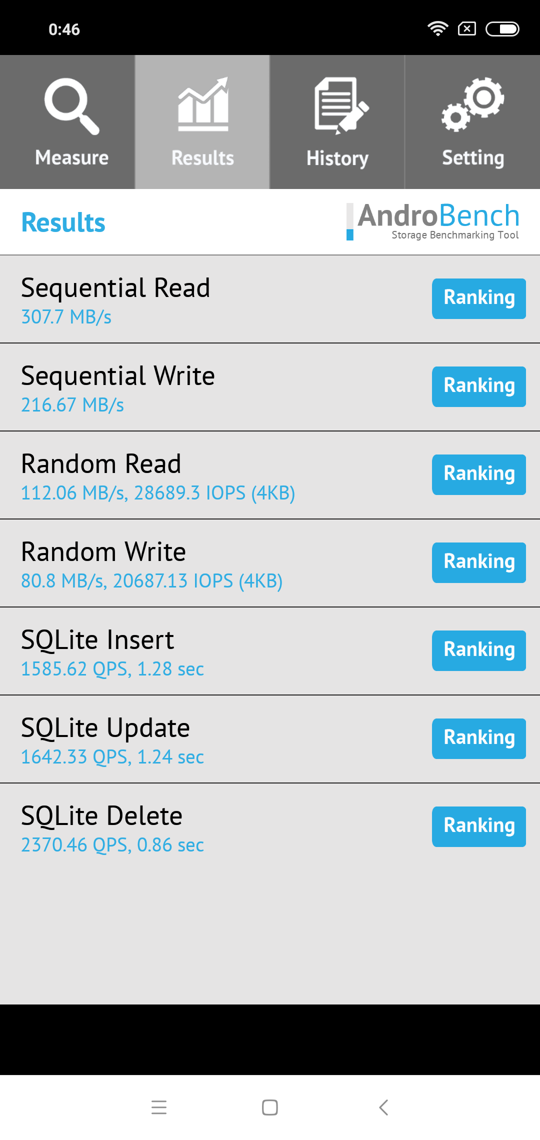 Результаты теста AndroBench на скорость работы с памятью: