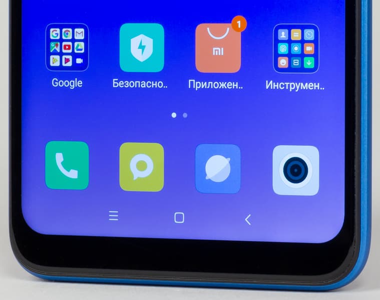Углы экрана сильно закруглены в пандан к закруглениям корпуса. Соотношение сторон экрана составляет 19:9, тогда как у Redmi Note 5 оно было 18:9. Соответственно, внизу под экраном получилась более тонкая полоска пустого пространства, чем у предыдущей модели.