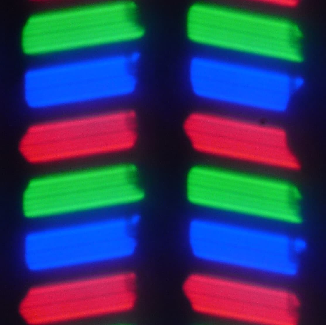 В данном смартфоне используется матрица типа IPS. Микрофотографии демонстрируют типичную для IPS структуру субпикселей: