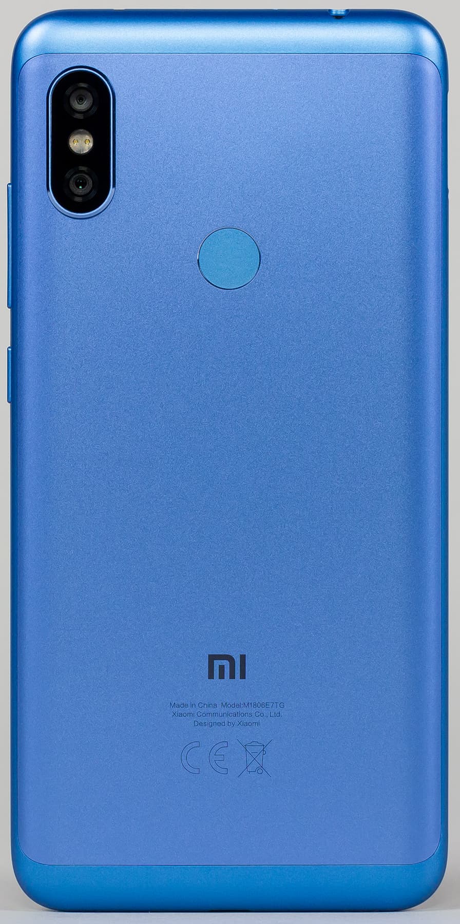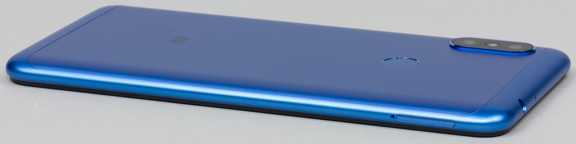 Задняя сторона корпуса также отличается: у Redmi Note 5 крышка была металлическая, с двумя маленькими пластмассовыми вставками на торцах. Здесь же пластик занимает куда большую часть общей поверхности, поскольку из него выполнена вся рамка вместе с боковинами и верхним и нижним торцами, а из металла — лишь центральная часть крышки.