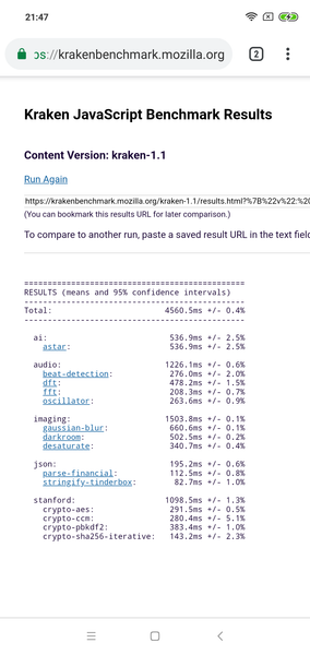 Что касается бенчмарков для оценки скорости движка javascript, то стоит всегда делать скидку на то, что в них результаты существенно зависят от браузера, в котором запускаются, так что сравнение может быть истинно корректным только на одинаковых ОС и браузерах, а такая возможность имеется при тестировании не всегда. В случае с ОС Android мы всегда стараемся использовать Google Chrome.