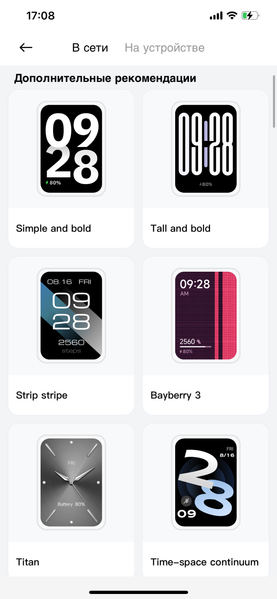 Как и прежде, здесь нет возможности устанавливать сторонние приложения, но есть большой выбор циферблатов.