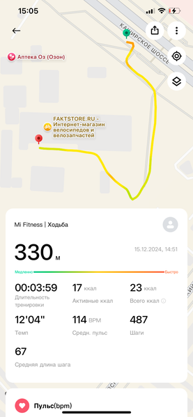 То же можно сказать и о построении маршрута при тренировках на открытом воздухе. Да, браслету нужно около полуминуты, чтобы поймать сигнал спутников, но затем он строит очень точный и детализированный трек, не будучи подключенным к смартфону (следовательно, без возможности использовать его геопозиционирование).