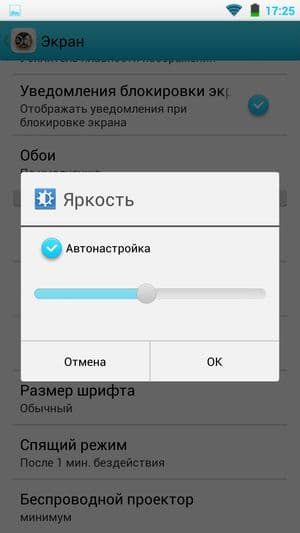 При ручном управлении яркостью и при выводе белого поля во весь экран максимальное значение яркости составило около 525 кд/м², минимальное — 62 кд/м². Максимальная яркость высокая, значит, учитывая эффективный антибликовый фильтр, читаемость даже в солнечный день вне помещения должна быть на хорошем уровне. В полной темноте яркость можно понизить до комфортного уровня, но с точки зрения экономии энергии яркость могла бы быть и пониже. Есть автоматическая регулировка яркости по датчику освещенности (находится слева от глазка фронтальной камеры). В автоматическом режиме при изменении внешних условий освещенности яркость экрана как повышается, так и понижается. В полной темноте в автоматическом режиме яркость уменьшается где-то до 200 кд/м² (слишком ярко), в условиях освещенного искусственным светом офиса (примерно 400 лк) яркость устанавливается на 330-370 кд/м² (тоже многовато), в ярко освещенном окружении (соответствует освещению ясным днем вне помещения, но без прямого солнечного света — 20000 лк или немного больше) — повышается до 480-505 кд/м² (близко к максимуму, что и ожидалось). В итоге функция автоподстройки яркости работает не совсем адекватно — яркость завышается, также мы отметили нестабильность в работе этой функции. Присутствует некоторая модуляция подсветки, но ее амплитуда относительно невелика, а спектральный максимум приходится примерно на 25 кГц, поэтому визуально мерцание экрана невозможно увидеть и наличие такой модуляции никак не может сказываться на комфорте работы с этим устройством.