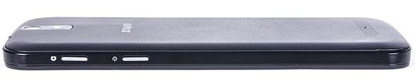 Корпус смартфона целиком выполнен из пластика — металла здесь нет. Пластик качественный и не маркий: на твердых матовых боковых поверхностях отпечатков пальцев не остается, а задняя крышка и вовсе выполнена с текстурированием «под кожу». В руках смартфон удерживается крепко и надежно за счет матовой поверхности боковин и шершавой текстурированной поверхности задней крышки. Крышка не имеет прорезиненного эффекта soft-touch, однако за счет кожаной текстуры руки совершенно не скользят по нему и также не оставляют отпечатков. Корпус отлично собран — между деталями не найти неряшливых щелей или зазоров, но к тому же, в отличие от THL T100S, он настолько крепко сбит, что при сжатиях не слышно ни малейшего скрипа или дребезжания (у THL T100S таковые наблюдались, хотя к внешней стороне сборки тоже не было никаких претензий).