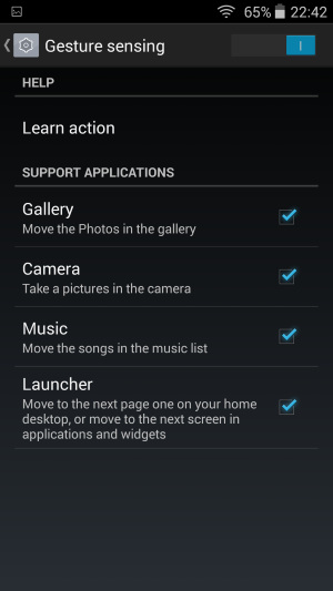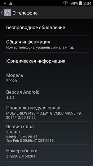 Zopo ZP920 работает в данный момент на программной платформе Google Android версии 4.4.4. Производитель не устанавливал никаких альтернативных оболочек, так что организация всех меню, рабочих столов и функциональность панели уведомлений с меню быстрых настроек здесь точно такие же, как в «стоковой» Google Android ОС. На фирменный интерфейс ОС Android производитель смартфона практически никак не повлиял. Добавлена лишь поддержка управления жестами: например, можно, не прикасаясь к экрану, перелистывать изображения, просматривать страницы в браузере, переключать треки в плеере и т. п.