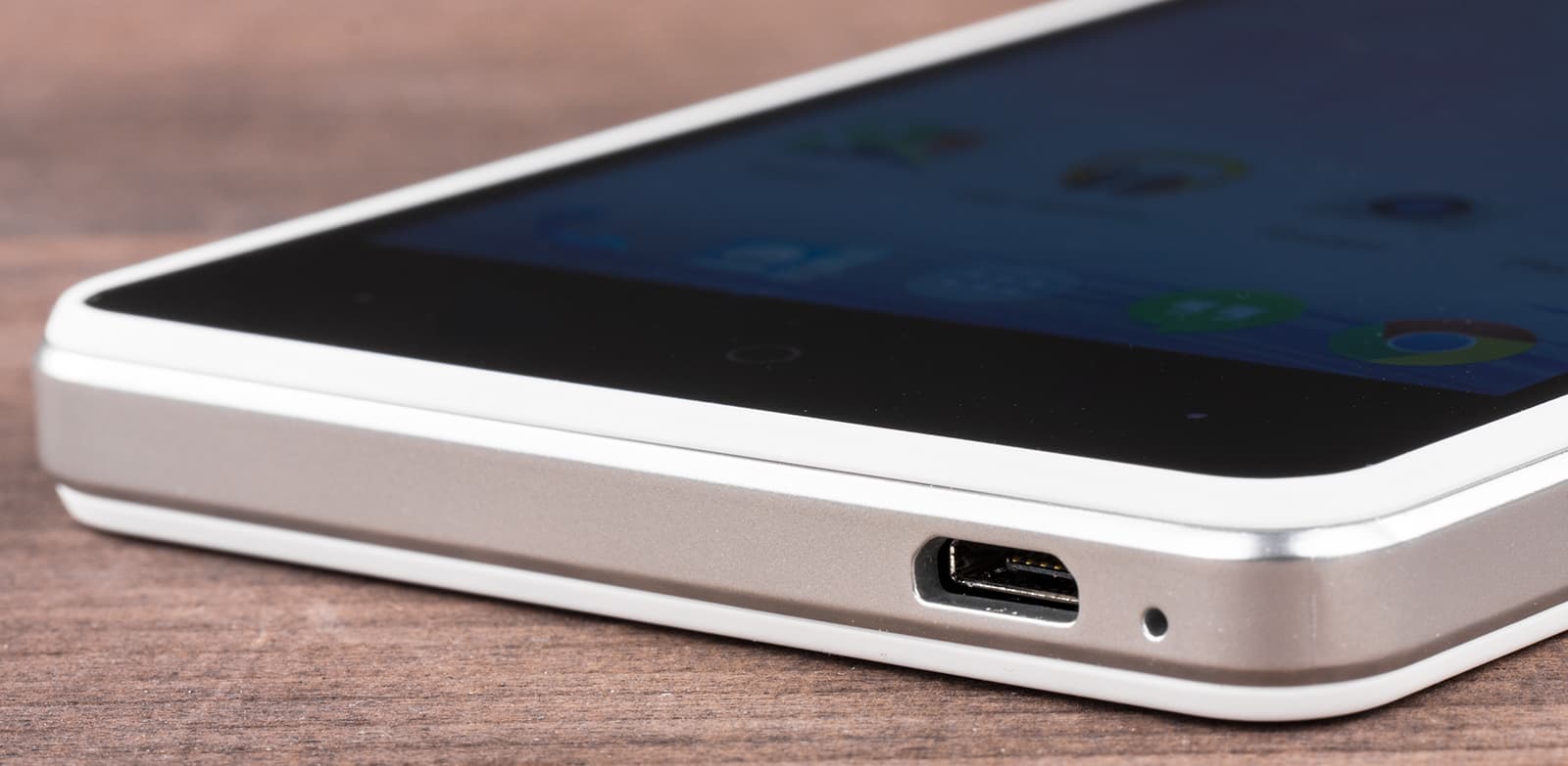 Универсальный разъем Micro-USB размещен в нижнем торце, аудиовыход 3,5 мм для наушников врезан в верхний. Разъем Micro-USB поддерживает подключение периферийных устройств в режиме OTG. Разъемы смартфона не прикрыты крышками, защитой от воды и грязи устройство не обеспечено. Не найти здесь и крепления для ремешка.