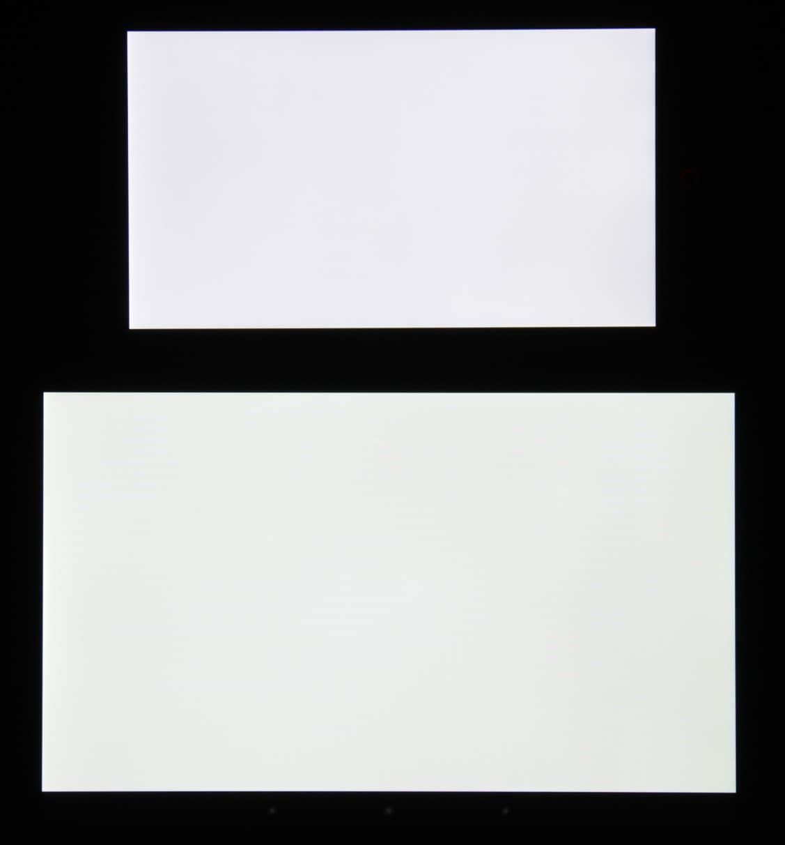 Экран имеет хорошие углы обзора без значительного сдвига цветов даже при больших отклонениях взгляда от перпендикуляра к экрану и без инвертирования оттенков. Для сравнения приведем фотографии, на которых на экраны Zopo ZP920 и Nexus 7 выведены одинаковые изображения, при этом яркость экранов изначально установлена примерно на 200 кд/м², а цветовой баланс на фотоаппарате принудительно переключен на 6500 К. Перпендикулярно к экранам белое поле: