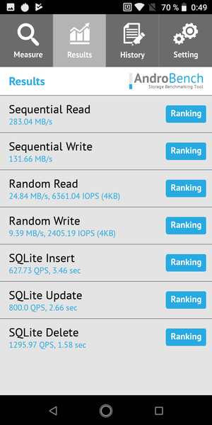 Модем X9 LTE, входящий в SoC Qualcomm Snapdragon 435, в теории поддерживает сети LTE Cat.7/13 со скоростью передачи данных до 300/100 Мбит/с. Однако на фирменном сайте ZTE указана поддержка лишь LTE Cat.4 (150/50 Мбит/с). В любом случае, поддерживаются все три используемых в России диапазона LTE FDD (Band 3, 7, 20), что гораздо важнее. На практике в пределах городской черты московского региона аппарат демонстрирует вполне уверенную работу в беспроводных сетях четвертого поколения.