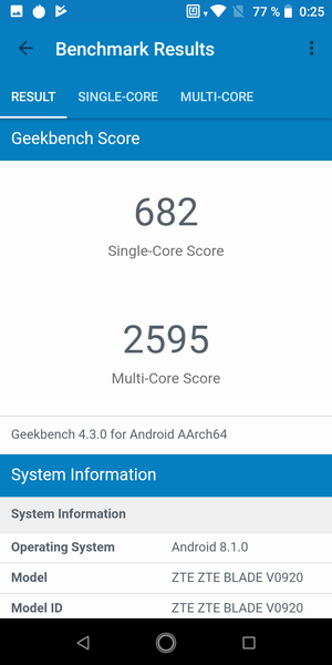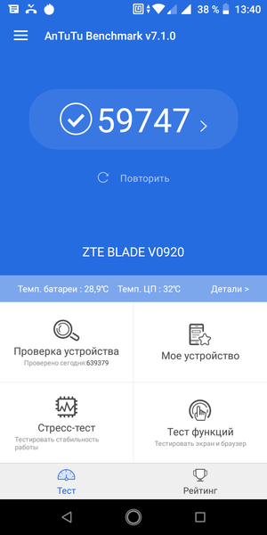 Аккумуляторная батарея ZTE Blade V9 Vita имеет объем 3200 мА·ч, и смартфон демонстрирует вполне достойные результаты автономности — очевидно, сказывается наличие аппаратной платформы Qualcomm с хорошей оптимизацией.