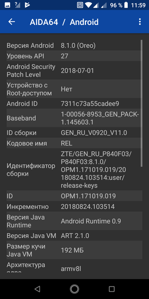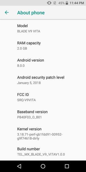 В качестве программной платформы ZTE Blade V9 Vita использует ОС Android версии 8.1 с возможностью обновления по воздуху (ОТА). Интерфейс чистый, без собственной оболочки, добавлены и расширены лишь некоторые функции. Например, есть возможность поменять местами кнопки в панели навигации, вывести на экран виртуальную смарт-кнопку, включить поддержку нехитрых жестов вроде подъемов и переворачиваний корпуса.
