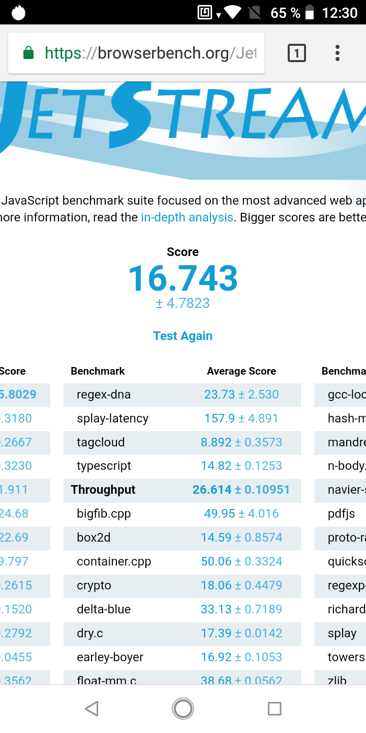 Что касается бенчмарков для оценки скорости движка javascript, то стоит всегда делать скидку на то, что в них результаты существенно зависят от браузера, в котором запускаются, так что сравнение может быть истинно корректным только на одинаковых ОС и браузерах, а такая возможность имеется при тестировании не всегда. В случае с ОС Android мы всегда стараемся использовать Google Chrome.