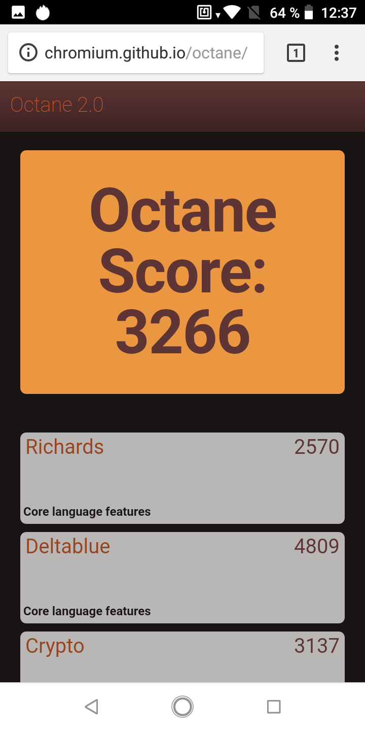| Google Octane 2 (больше — лучше) | 3266 | 2998 | 3818 | 2617 | 4290 |