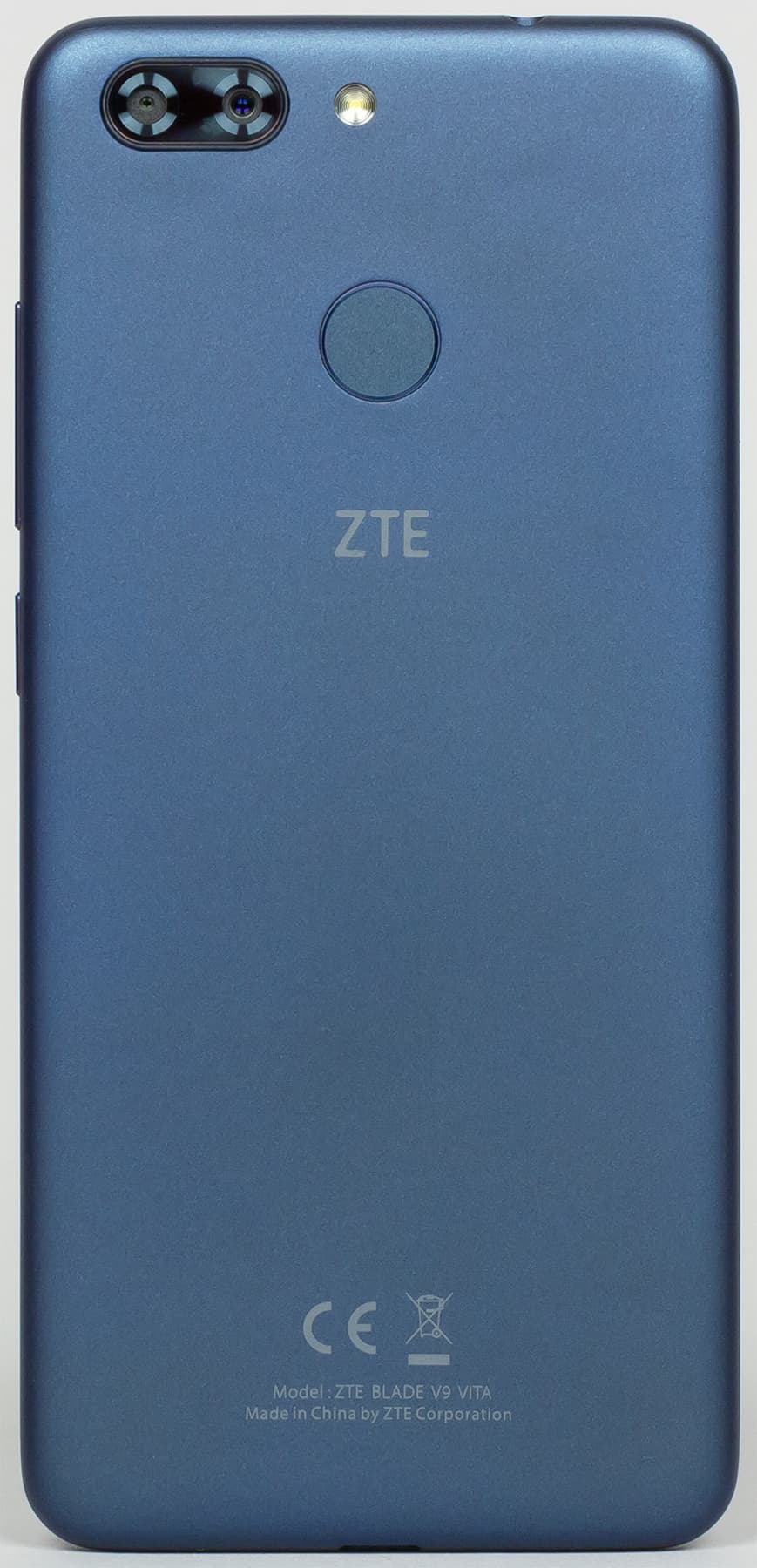 Рамка вокруг экрана довольно узкая (хотя огромные поля сверху и снизу от экрана сейчас уже выглядят непривычно), экран по нынешним меркам небольшой, так что корпус можно даже назвать компактным. Соотношение площади экрана и площади передней панели составляет здесь 77%, тогда как у современных «красавчиков» оно может превышать 90%. Зато у ZTE Blade V9 Vita экран с модной вытянутой геометрией (с соотношением сторон 18:9) не имеет, к счастью, ни выреза-челки, ни закруглений по углам.