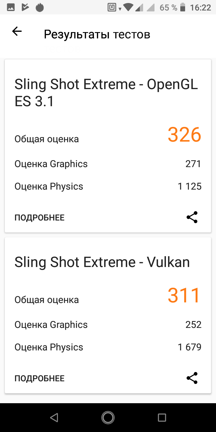 | 3DMark Sling Shot Vulkan (больше — лучше) | 311 | — | 311 | — | — |