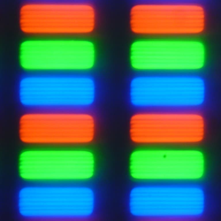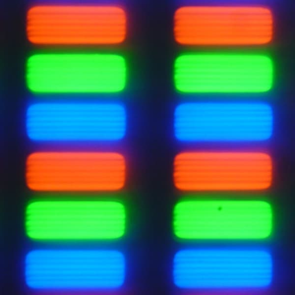 В данном смартфоне используется матрица типа IPS. Микрофотографии демонстрируют типичную для IPS структуру субпикселей: