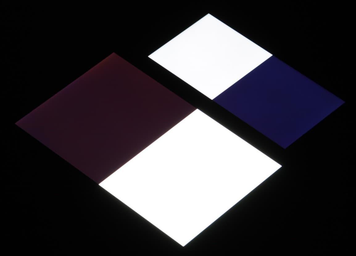 Однако с учетом сильного снижения яркости под углом стабильность черного нельзя записать в достоинства. При перпендикулярном взгляде равномерность черного поля средняя, ближе к краю черное поле местами заметно высветляется: