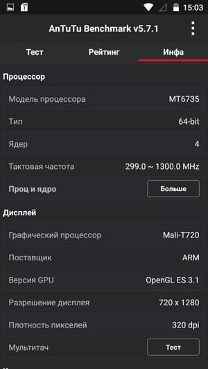 - SoC MediaTek MT6735, 1,3 ГГц, 4 ядра ARM Cortex-A53