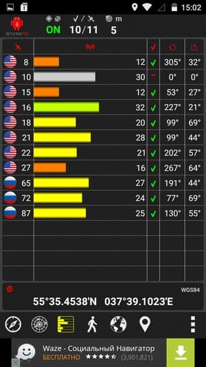 Навигационный модуль работает с двумя сетями: GPS/A-GPS и отечественной Глонасс, без поддержки китайской Beidou (BDS). К быстродействию модуля претензий нет, первые спутники при холодном старте опознаются в течение первой минуты. Реализован в устройстве и датчик магнитного поля, на основе которого функционирует электронный компас навигационных картографических программ.