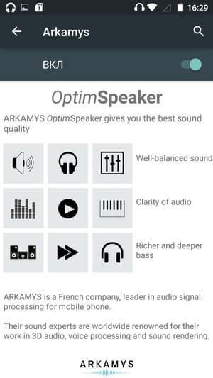 Звучание у ZTE Blade X7 находится примерно на том же уровне, что и у модели Blade S6. Звучит аппарат неинтересно. Звук не только блеклый, бесцветный и глухой, без наличия высоких частот, но к тому же еще и с заметным присутствием искажений на максимальном уровне громкости, который, надо заметить, тоже не вполне достаточен. В наушниках ситуация немного лучше: звук глухой, неяркий, но хотя бы посторонних шумов здесь поменьше, да и возможность ручных настроек имеется. Для проигрывания мелодий используется плеер Google Play Music, а для улучшения звучания — встроенная звуковая система французской компании Arkamys. Есть возможность использовать эквалайзер с предустановленными значениями. В разговорном динамике речь собеседника, тембр и интонации остаются узнаваемыми, здесь особых претензий нет.
