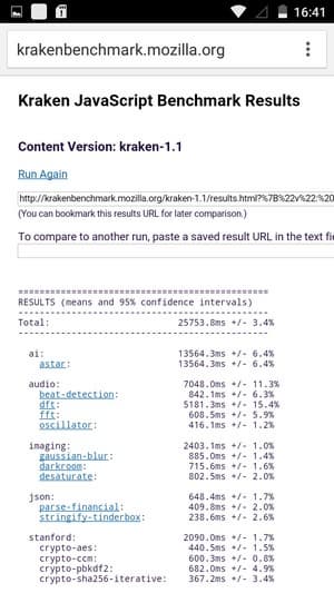 | Mozilla Kraken (мс, меньше — лучше) | 25754 | 13041 | 14490 | 15169 | 11412 |