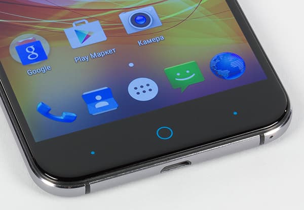 На передней панели, прикрытой защитным стеклом с чуть покатыми краями, все необходимые элементы оказались на месте. Сверху, помимо привычных сенсоров, имеется еще и индикатор событий, а снизу аппаратные сенсорные кнопки снабжены мягкой голубоватой подсветкой. К тому же назначение этих кнопок можно самостоятельно менять в соответствующем разделе меню настроек.