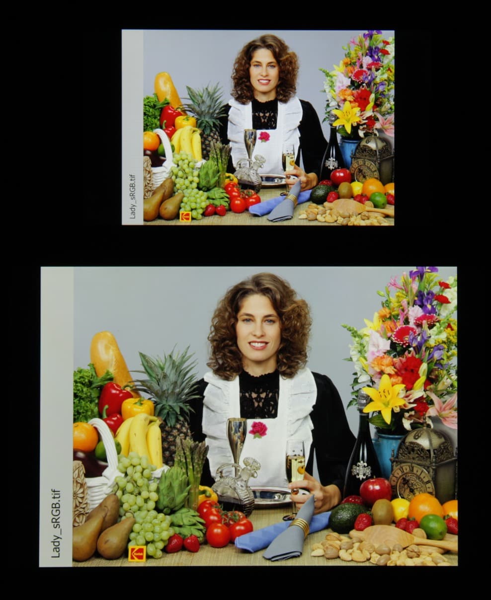 Отметим хорошую равномерность яркости и цветового тона белого поля. И тестовая картинка: