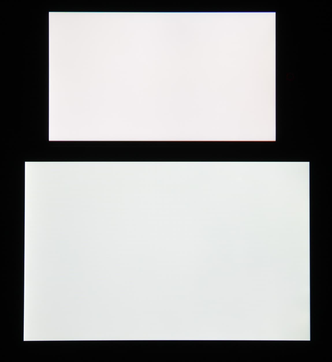 Экран имеет хорошие углы обзора без значительного сдвига цветов даже при больших отклонениях взгляда от перпендикуляра к экрану и без инвертирования оттенков. Для сравнения приведем фотографии, на которых на экраны ZTE Nubia Z11 и Nexus 7 выведены одинаковые изображения, при этом яркость экранов изначально установлена примерно на 200 кд/м² по белому полю на весь экран, а цветовой баланс на фотоаппарате принудительно переключен на 6500 К. Перпендикулярно к экранам белое поле: